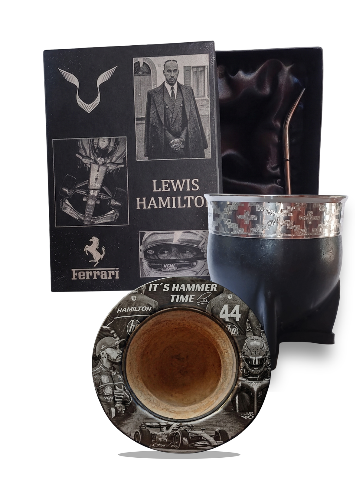 Mate imperial de calabaza con fotograbado láser de Lewis Hamilton en la virola. Edición limitada F1 2026. Incluye bombilla premium y caja negra de presentación grabada. El regalo perfecto para fanáticos de la Fórmula 1. Diseño exclusivo, hecho a mano en Argentina. #44 · Ferrari · F1 2026.